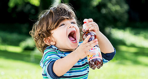 Zum Durstlöschen werden Wasser oder ungesüßte Tees empfohlen. Trinkwasser aus der Leitung oder das HiPP Babywasser (stilles und natriumarmes Mineralwasser) und ungesüßte Kräuter- und Früchtetees sind deshalb zum Trinken bestens geeignet.
