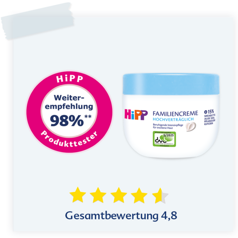 „Die HiPP Familiencreme ist einfach fantastisch! Meine ganze Familie liebt sie – so mild, sanft zur Haut und unglaublich pflegend. Absolut empfehlenswert!“