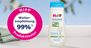 1) 142 Eltern wurden zum HiPP HOCHVERTRÄGLICH Öl-Balsam befragt. 98% würden diesen weiterempfehlen.