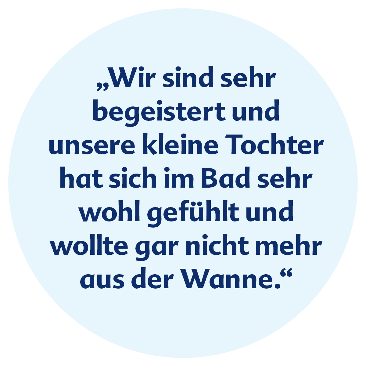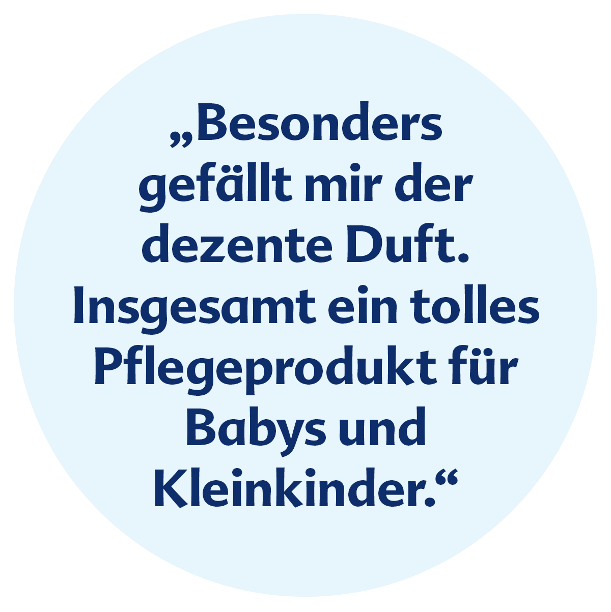 Es ist besonders sanft zur empfindlichen Babyhaut, sehr gut verträglich und kommt ganz ohne Parfum aus – genau das, was ich mir für die Hautpflege meines Babys wünsche. Nach dem Baden fühlt sich die Haut angenehm weich und gepflegt an. Für uns ein echtes Wohlfühl-Produkt!“ - ⭐⭐⭐⭐⭐